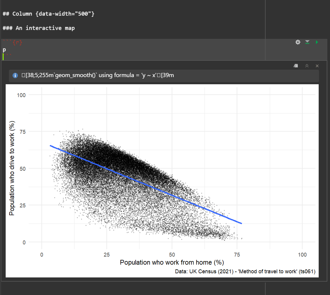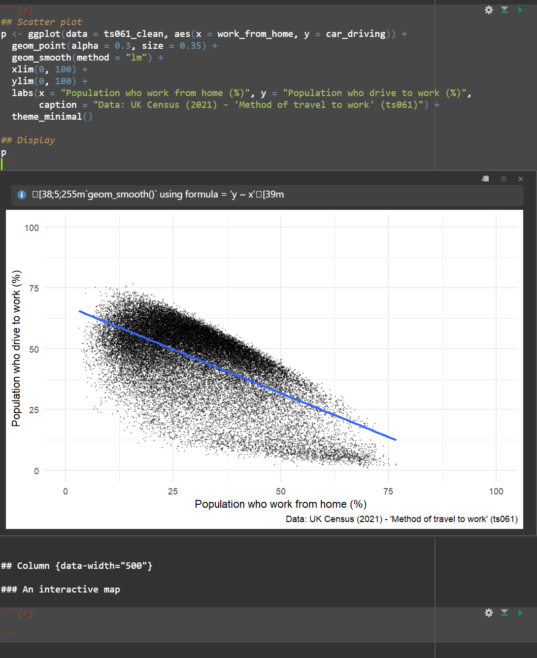 caption = "Data: UK Census (2021) - 'Method of travel to work' (ts061)") +