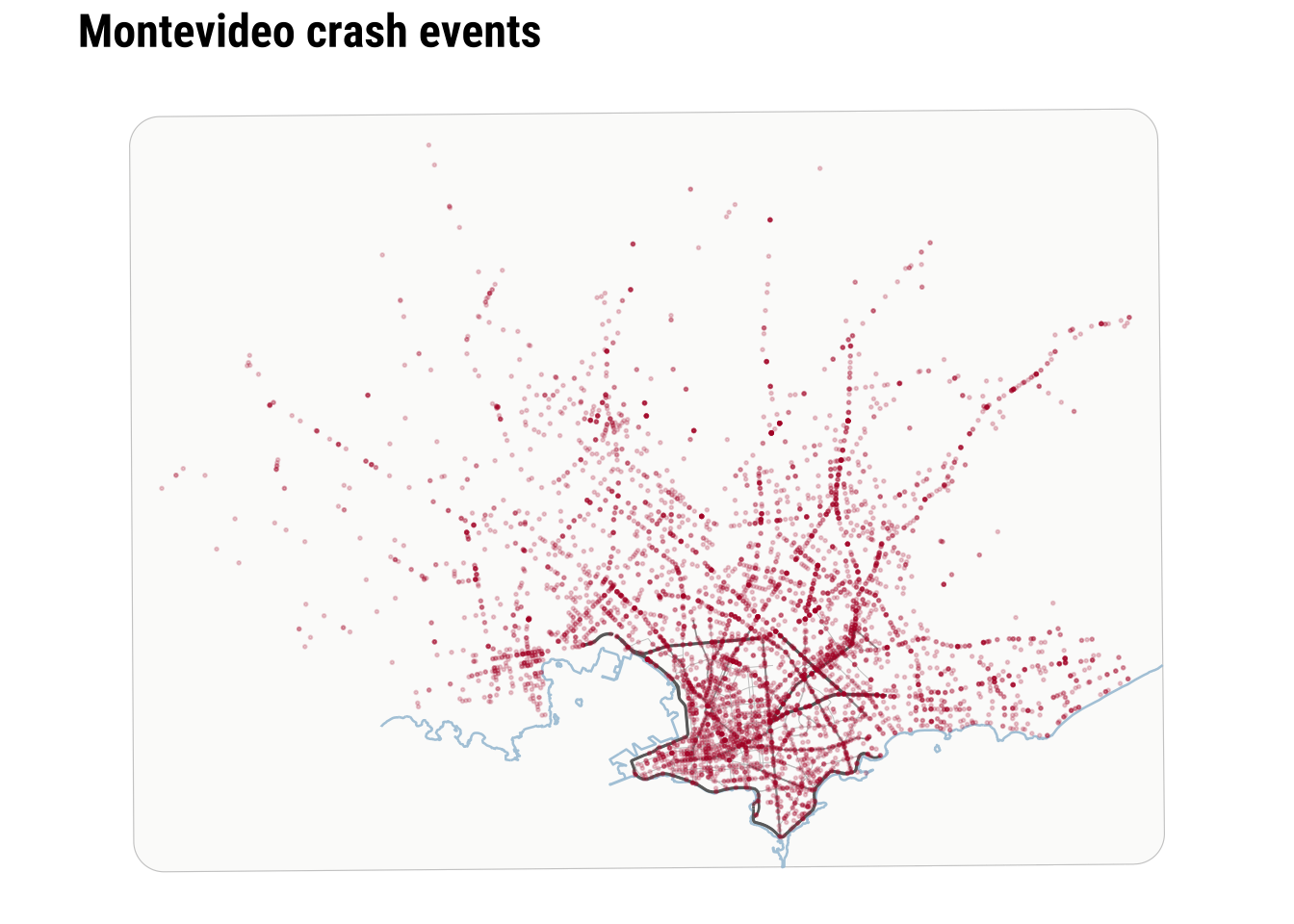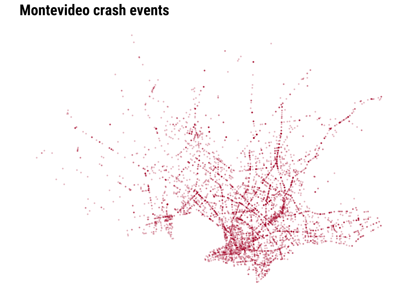 This chapter introduces point-pattern thinking through a Montevideo case: traffic injury records from 2022. The aim is to cover key techniques on how to visualise and analyse point patterns, such as spatial concentration and clustering. Before building formal models, we usually want to know where events are concentrated, whether that concentration is local or widespread, and how different mapping choices change what we see.
